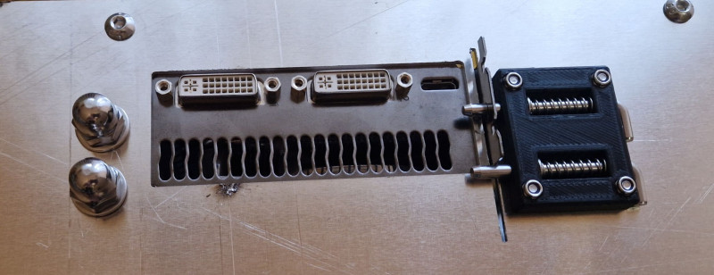 VGA rögzítés a hátlapon. Itt még csak egy próba VGA volt természetesen. Nyers alu lemezen.