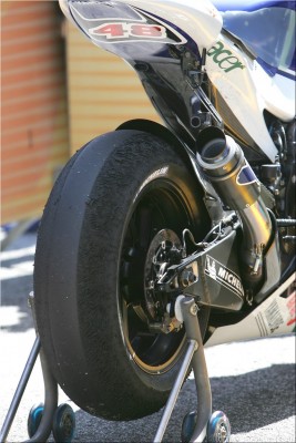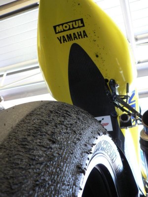 Nezem... amugy neztem a practicet egesz nap. Basszus a motogp es a moto2 is eleg sokan durvan tepik a gumik jobb oldalat. Stoner gumija igy nezett ki alig par kor utan... Motogp gumin azert ritka az ilyesmi: