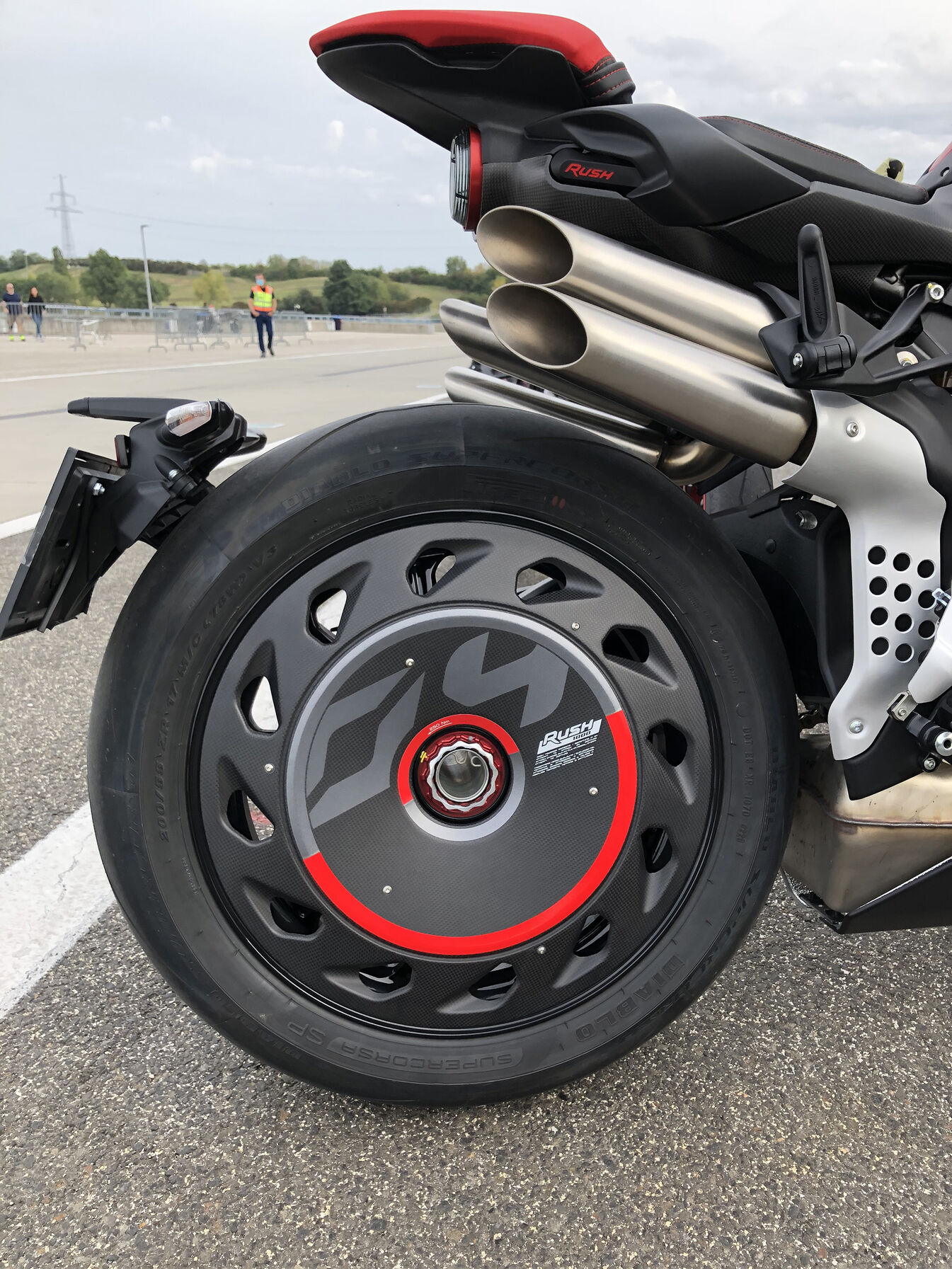 Hungaroringen mellettünk parkoltak le az MV Agustások, például a képeken látható ritkaságokkal. Az a Rush annyira futurisztikus, vagy én nem is tudom mi a jó szó, hogy nem találni rajta egy négyzetcentimétert sem ami ne lenne valamiért különleges. Minden utolsó dolog ki van dolgozva. Szerintem ha leülnék nézegetni akkor 2-3 óra múlva is találnék rajta még újat.