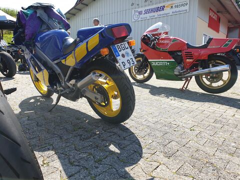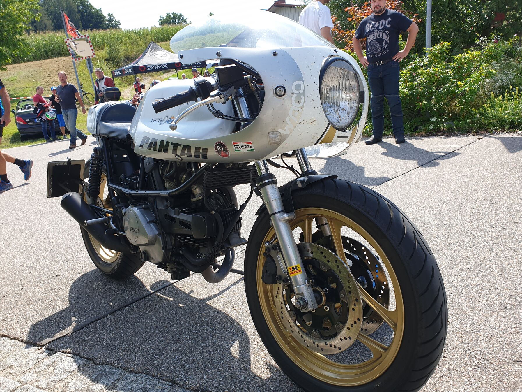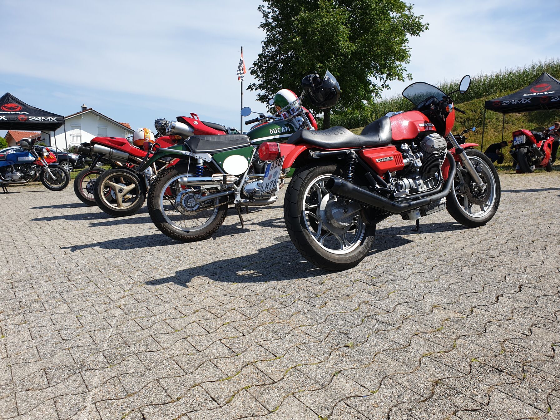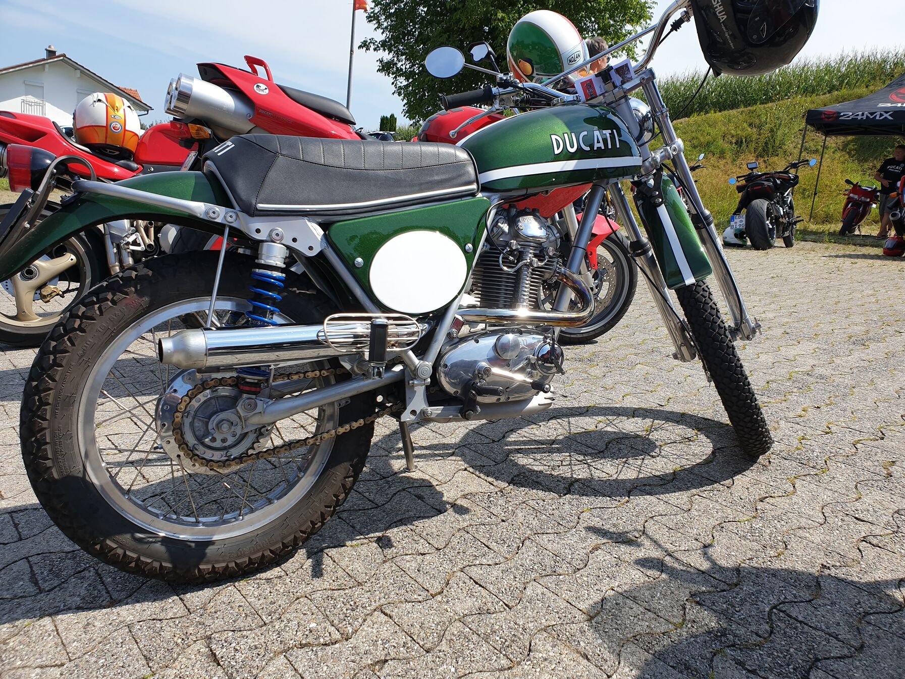 Tegnap elmentem egy ducati talalkozora itt a kozelben. Nem szoktam ilyenekre jarni, latok hetkoznap motort eleget, de itt voltak azert nem mindennapi dolgok. A desmosedici-rol lecsusztam, az epp elment, amikor jottem. A 65e € -os regi sornegy 750s mv agustaval azert kibekulnek. A rettenetes szinu tzr 250 mogott a mike hailwood is eleg ritka.