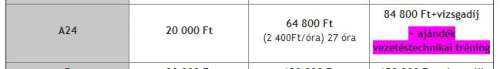kérdezz rá, hogy a pótórákat mennyiért számolják, mert van ahol az drágább. Nehogy ott is meglepetés érjen...Egyébként úgy látom, Bp-en a legolcsóbb, amúgy minél kisebb település, annál drágábbak a díjak (legalább a vizsgadíjak fixek).