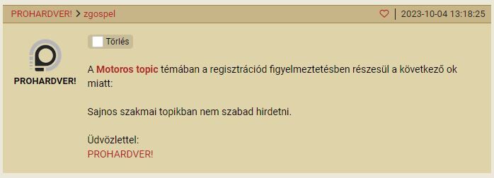 Úgy néz ki most ha megemlítem egy motoros topikban hogy egyébként árulom a motorom link meg minden egyéb konkrétum nélkül, akkor kapok egy ilyet: