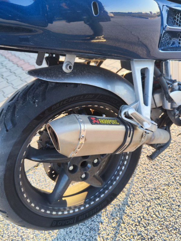 Van egy Akrapovic rajta, egy mű bizonylatos túra kormány a csutka helyett, fém fékcső elől, új gumik, markolat fűtés.