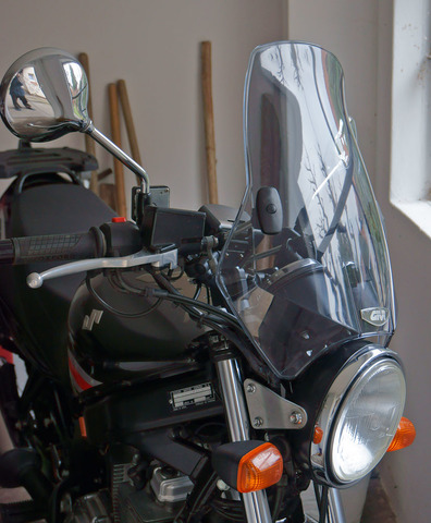 szerk: egyébként tényleg nem szép, viszont fölöttébb hasznos: előtte a kis Puignál már 110-120-as tempóval nagyon cibált a menetszél a GS500-on, most meg 130-nál sem. Jó ez! Gyanítom, hogy egy hirtelen jött nyári záporban is hasznos lesz.