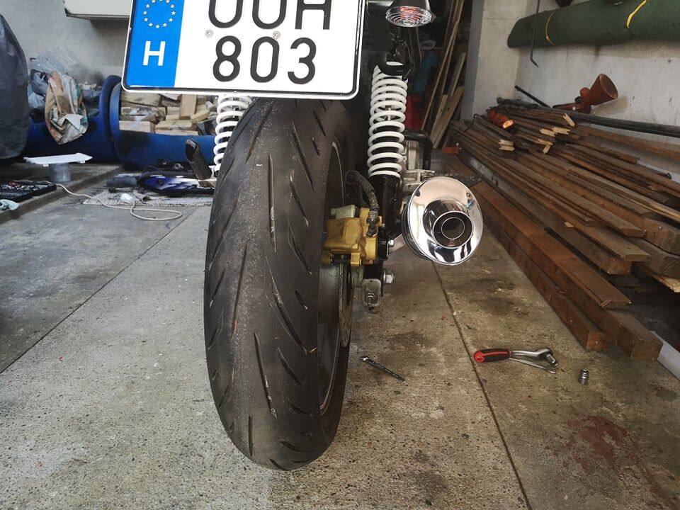 Mod2.: Most legalább látszik, hogy a 140/70-es hátsó is meglepően optimális rá valóban. +1 pont az angol CB csoportnak a tippért.