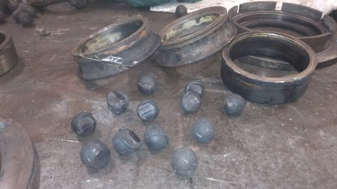 Ez egy folyamatos üzemű cukor centrifuga csapágya volt, .A csapágy elforgott a felületen, a tengely kissé elgörbült a terheléstől, de a golyók megvoltak.