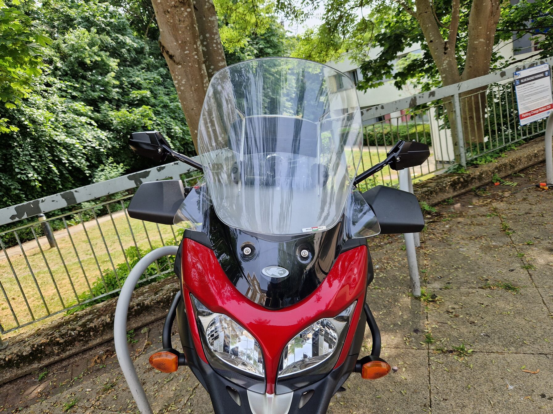 A "nagyon sportos" tárcsa ugyanis okoz némi gondot: közepes- vagy nagy intenzitású fékezésnél a lassítás végénél, kb 15 km/h környékén hirtelen megjelenik egy erőteljes remegés a fékkaron, majd azonnal elmúlik. A hiba bármikor reprodukálható volt, azt hittem elcsesztem valamit a tárcsákkal, de az internet kisegített: nem, ez ilyen. A "nagyon V-shape" okozza, annál a sebességnél létrejön valami vibráció. Szintén innen jött a segítség: le kell cserélni a gyári gumi vezetékeket fémhálóval erősített verzióra és elmúlik. És így is lett.