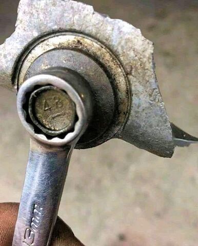 A fékcsövet tartó 2 konzolt elgörbítették, mert izomra húzták a nyolcas méretű csavarokat... A csavarokat le is sarkalták, rendeltem újat, a konzolokat visszaegyengettem. Egyértelműen látszik, hogyan kellett volna belerakni és akkor nem kellett volna izomra húzni..