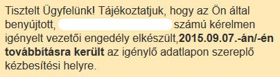 Nem, hanem naptári: aug 24-én vizsgáztam, 25-én voltam a vizsgaigazolást leadni az okmányirodában, és szeptember 8-án kaptam kézbe a papírt a postástól.