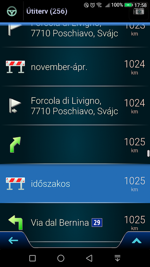 A GPS nálam jelzi az útvonalon a torlódás, baleset, jelzőtáblákat bemondja, sokszor nevetséges volt amikor nyáron figyelmeztet, hogy jeges csúszós útszakasz. Még ellenőriznem kell, hogy az útvonalon szereplő országok megvannak e a GPS térkép mappában.