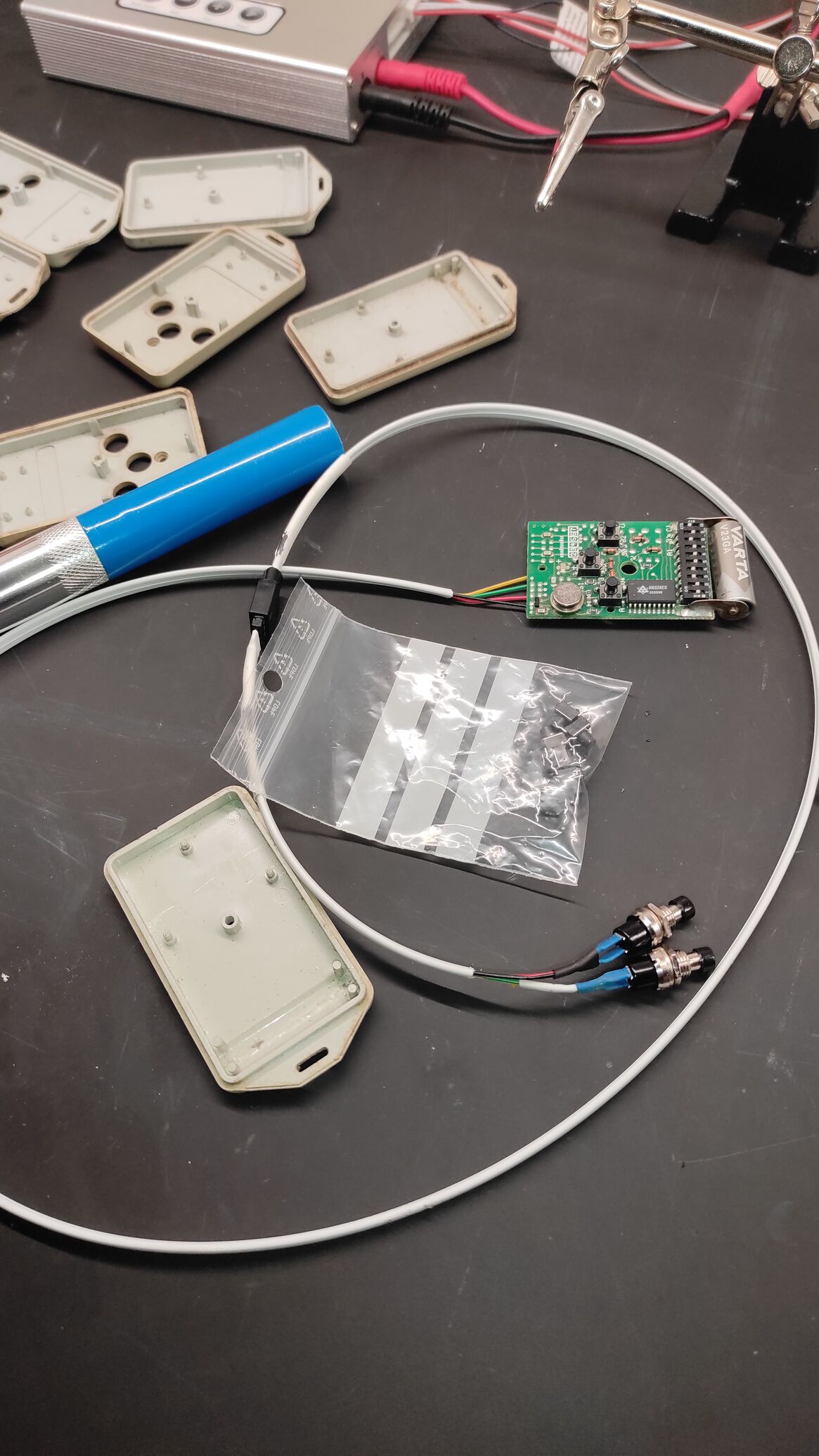 Ááá, nehogy azt hidd! Anno a Conrad-ból vettem egy tanuló szettet... Főled ledszalagot, meg kaputávirányítót forrasztok. Miután Apámnak megmutattam a kávédarálót, két dolog történt: kért egyet a kocsiba is és előadott egy marék távirányítót rossz gombokkal, amiket kicseréltem.