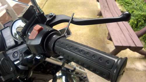Más: voltam egy 70 km-es kanyart gurulni az előbb, és egész jó a "tanyasi tempomat", bár igaz, délelőtt még "fejlesztettem" rajta. (Egy hengeres távtartó rudacska került a rövidebbik végére, ennél fogva nagyon könnyű hüvelykujjal a megfelelő pozícióba állítani. Ez volt kéznél, de jobb, mint a sima drótvéget piszkálgatni, szerintem a kesztyűnek is jót tesz).