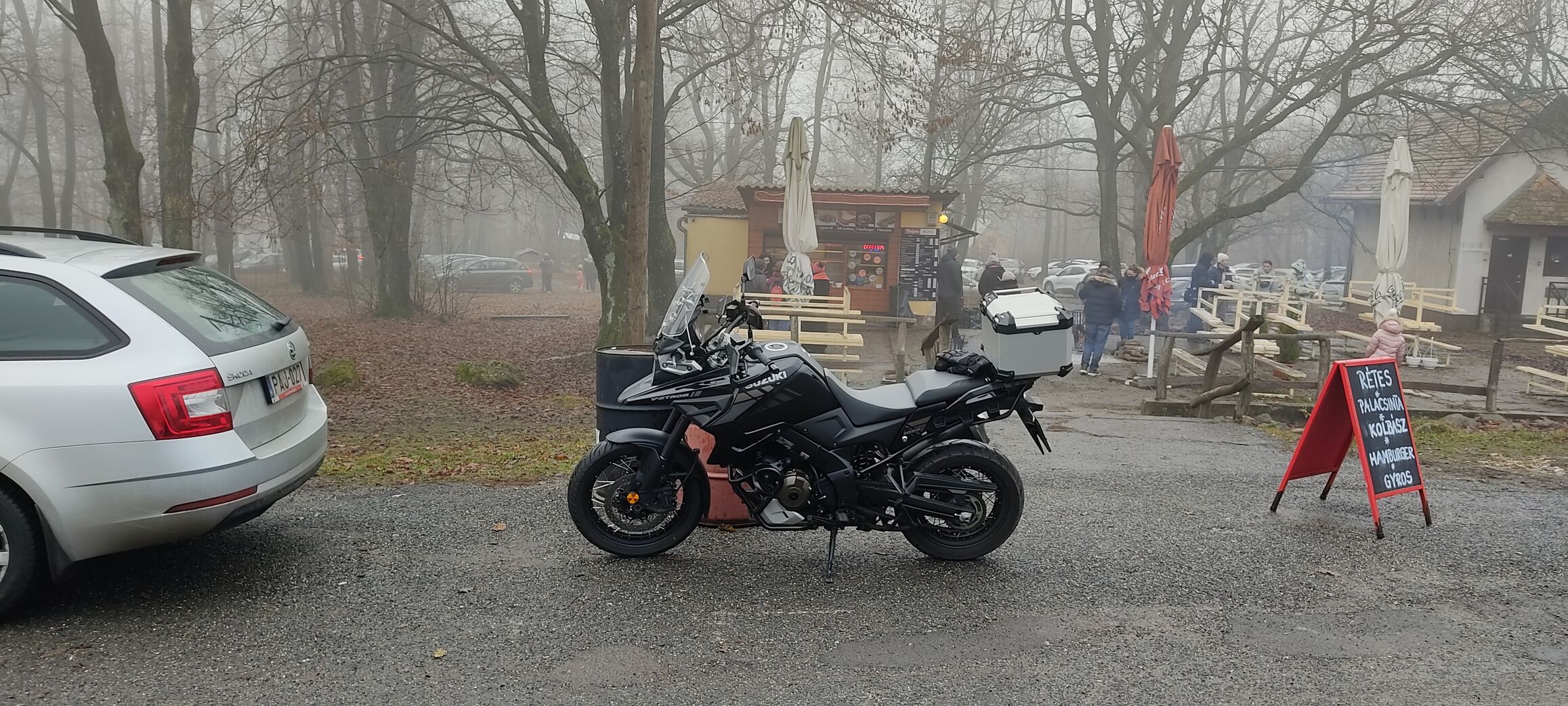 Az sem segítette a tapadást , hogy ugye Dobogókőn mindenki félre áll nézelődni autóval aztán hordják az útra a sarat ... motorom úgy néz ki mintha betoltam volna a disznók közé nyakig sár .