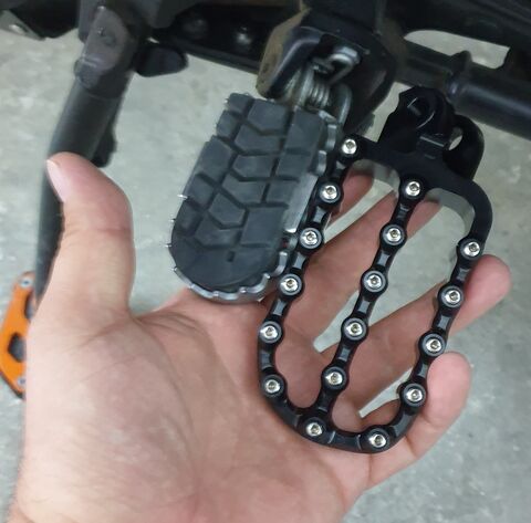 Én pl. a KTM-re vettem utoljára egyet, mert mikor a Mátrából jöttünk haza útközben észrevettem, hogy nem lehet rajta rendesen állni! Gyorsan bementem facebookon a KTM Adventure Crowd Hungary csoportba, használtam a keresőt, találtam nekem szimpatikusat a posztok között, megrendeltem ezt a fekete lábtartót, feltettem a 1190-re, és jelentem azóta stabilabban állok rajta, mint a talajon!
