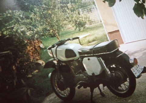 Na ne vicceljünk már, hogy egy MZ Trophy felújítása ekkora szenvedés. Én végigcsináltam úgy -17 évesen-, hogy egy ennél rosszabb alap volt. Internet meg motorszerelő műhely? Na ne röhögtessenek már, itt a Tenkes lábánál ugyan már hallottam róla akkor (2001), de még nem láttam. Nem egy Pannónia P20M-et akar felújítani, csak egy MZ Trophy-t. Az enyémről sajnos csak az alábbi kép maradt. A kormányhínárért én kérek elnézést, fiatalság, bolondság.