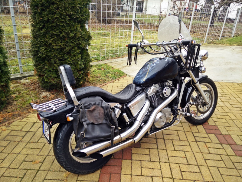 Utána jött pár MZ, a KTM, a gixer, a VFR és ezek után vettem egy 500-as Shadow-t (2007-ben, azt hiszem). Ezt nagyon szerettem, sokáig megvolt, bejártam vele fél Európát. De sajnos egyre több lett vele a műszaki probléma, az egyik előző tulaj hanyagsága miatt és úgy osztottam-szoroztam, hogy nem éri meg költeni rá. Ezek után megint nem volt pénzem normális chopperre, így 2015 elején vettem egy SV650-et, ez nem sokáig volt meg. Nagyon jó motor volt, első tulajtól vettem mindössze 36.000- km.-rel, de sajnos nekem annyira kényelmetlen volt, hogy 3 hónap után elváltak útjaink. Utána jött a TDM 850, amit most októberben adtam el és végre megvan az áhított 1100-as Shadow. Persze lehetett volna előbb is, de én nem vagyok az a fajta, aki kenyéren-vízen él, hogy megvegyen valamit. Kicsit bő lére eresztettem, de nem baj. Ez volt az igazi coming out.