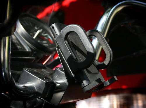 Tessék! Egy sima 1,5mm-es vaslemez meghajlítva, és a kormányrögzítő alumínium valamik alá szorítva. Pont ennyi rés volt, nem feszíti be semennyire sem (a réshez választottam a lemezvastagságot). A csavarok szárainál a lemez ki van reszelve. A lemez felfelé elkeskenyedik, egyrészt, hogy ne legyen kiálló áles része, másrészt hogy a kormány csavarjait kényelmesen meg lehessen húzni. A "felálló" részéhez 2 db M5-ös csavar rögzíti egy filléres univerzális GPS-tartó fejrészét. Fej szétszedve, műanyag átfúrva, oda csavarozva, majd össze rakva. Telefon-mérettől 3,5"-ig állítható szélességű, és nagyon szorosan tart. A lemez hőálló matt fekete spray-vel festve, az volt itthon. Tudom, hogy nagyon barkácsjellegű, de egy buznyákom sincs most, barkácsolni meg úgy is szeretek.