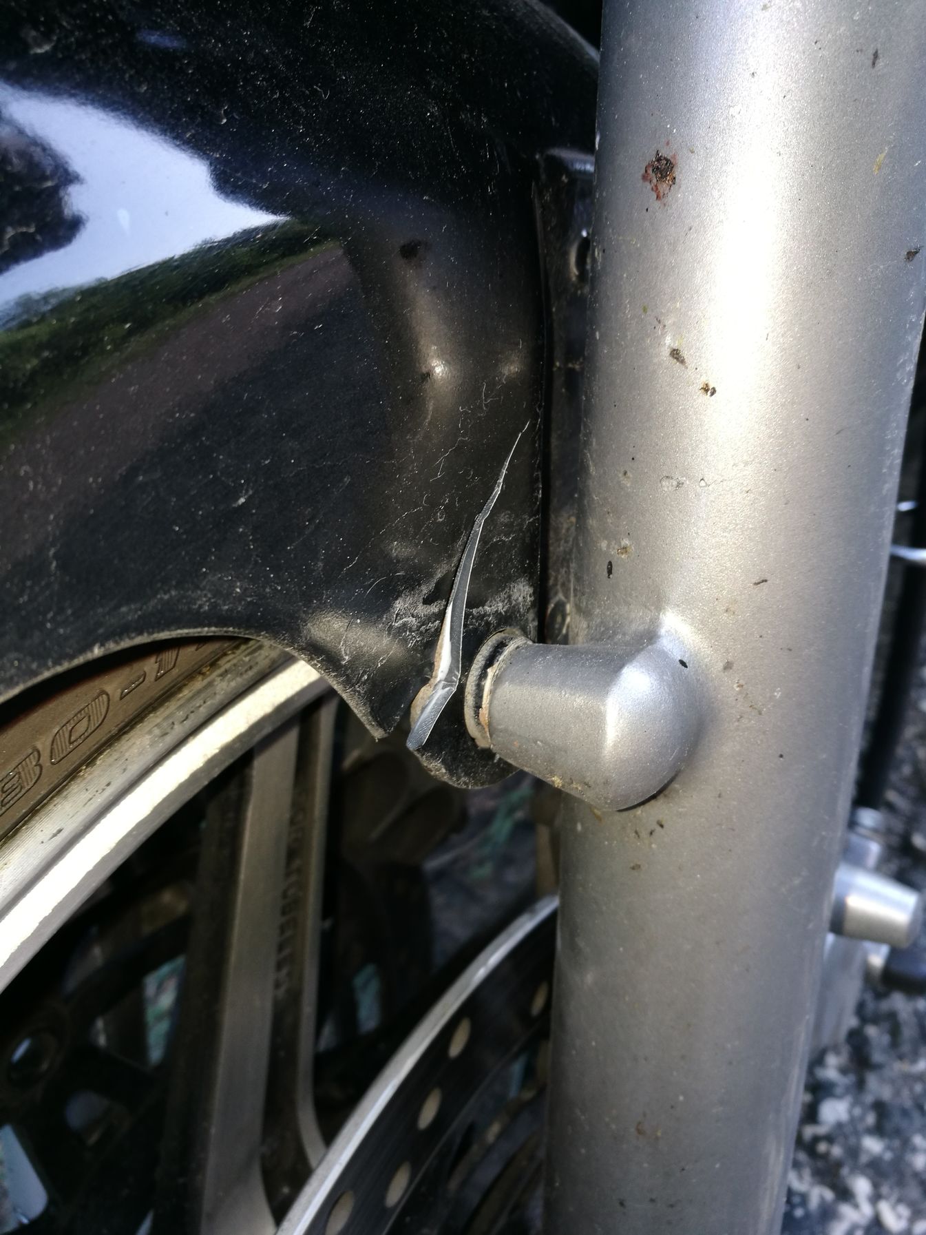 A helyszínen lefotóztam minden sérülést a motoron. Nem tudom minek hívják a teleszkópot összefogó alsó részt, azon a kormány ütköző bütyök elgörbült, a teleszkóp oldalról nézve nem fut páthuzamosan. Rakok fel pár képet nemsoká.