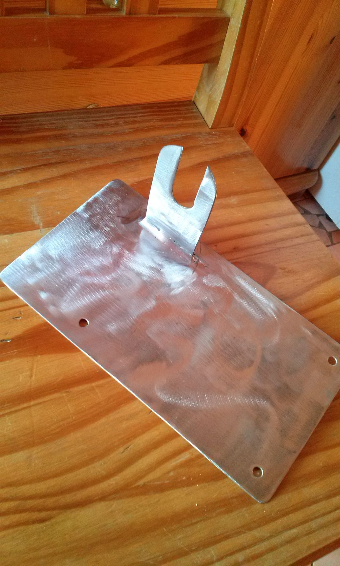 A régi azért tört le mert alumínium volt és már el volt repedve. Az előző tulajok valamelyike már egyébként is eltörte már, másik furattal volt felrakva nem a gyárival. Majd 5k km-t mentem vele így is. Erre meg nem nagyon tudok hova merevítőt rakni, pont a villa végénél lesz a tábla, esetleg egy damillal/dróttal odakötöm. Na meg acélból készült.