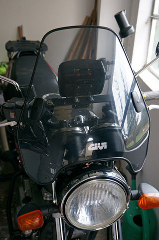 Azt bármikor szívesen lehajítom - mivel rájöttem hogy mennyire zavarja a szembejövőket - akárhogy is állítom be, kb. másfél éve nem is kapcsoltam fel. A kormánymagasítóm (direkt nem az 5000 forintos, kilincsből-biliből öntött magyar kisiparit vettem, hanem az SW-Motech-et 16k-ért) meg műbizonylatos. Műszakira viszem a füzetkéjét. Egyébként az előző műszakin átment a menetfénnyel is - vizsgabiztos ugyan megemlítette, de - miután egyébként minden rendben volt a vason, sőt két éve már az idéntől kötelező oldalsó sárga prizmákkal is rendelkeztem - aztán úgy fotózta a motort, hogy ne látsszon.