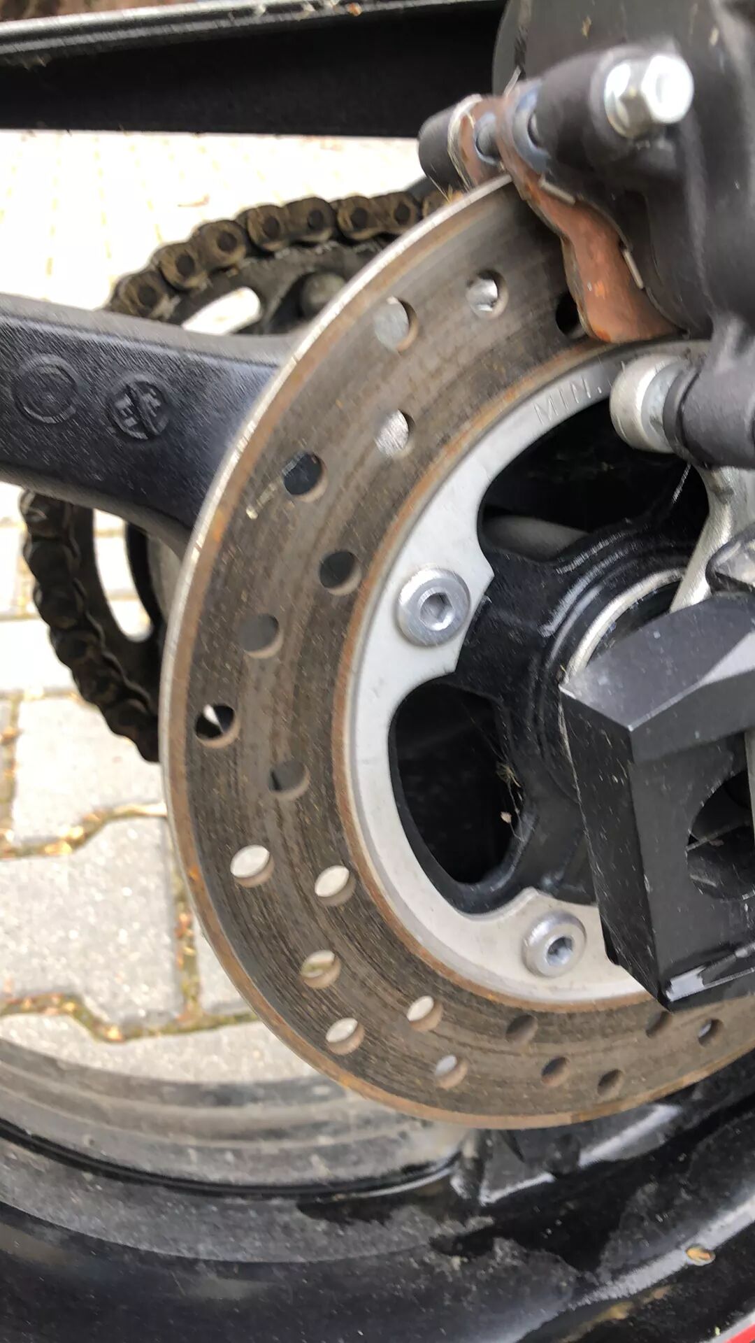 Hátsó kopásjelzőn, lánc halál rozsda élőben még szarabb volt, első hátsó tárcsa rozsdás, felületi rozsda több helyen, a motor eldőlt erről se szóltak.