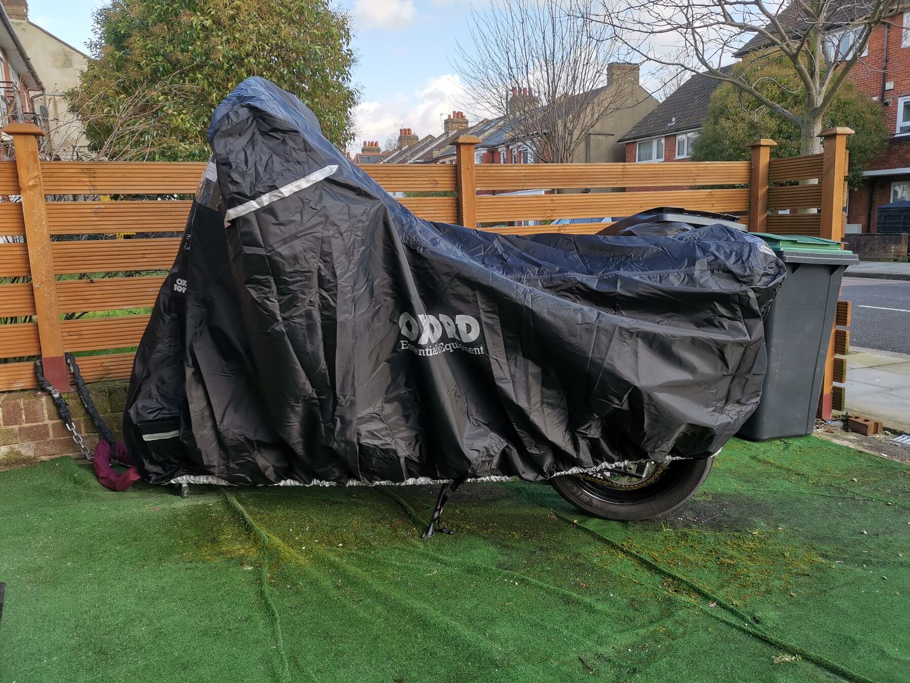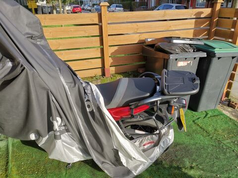 Ha már itt voltam, akkor olajat is cserélt, Motul 7100 ment bele, mert akkora csodákat regéltek róla, nekem eddig az 5100 is jó volt, meglátjuk. Persze szűrő is cserélve lett, nem értem miért akar a Suzuki csak két évente új szűrőt...Voltak viharok itt, 160-as szelet már nem bírta a 3 éves ponyva, drága ez a szezon, és még el sem kezdődött...