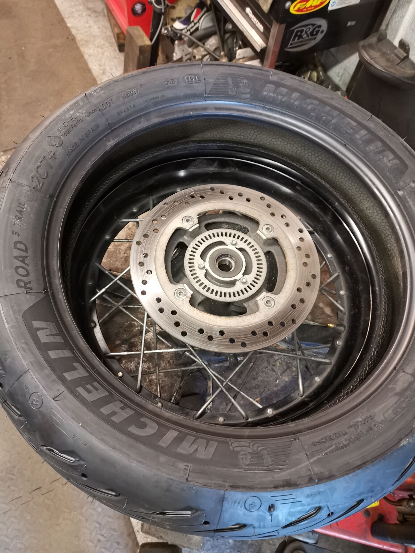 Autópályán jöttem vissza Budapestről, 1750 km autópálya alatt sem kopott kockásra a gumi, pedig a hőhullám közepén jöttem, akkor volt 43 fok pl Belgiumban. Előtte az Alpokban döntögettem a motort megpakolva utassal és csomagokkal, ott sem volt gond. Az első gumi 2 komponensű, a hátsó 3, simán bír 20.000+ km-t és mégis tapad.Sajnos hátsó cserélnem kell egy szög miatt, két hét és 140 Font lesz felszerelve, otthon nem tudom mennyi. Itt egy szett kb 240 Font felszerelve és annyira friss, hogy a tavaly másfél hónapos gumit raktak fel.