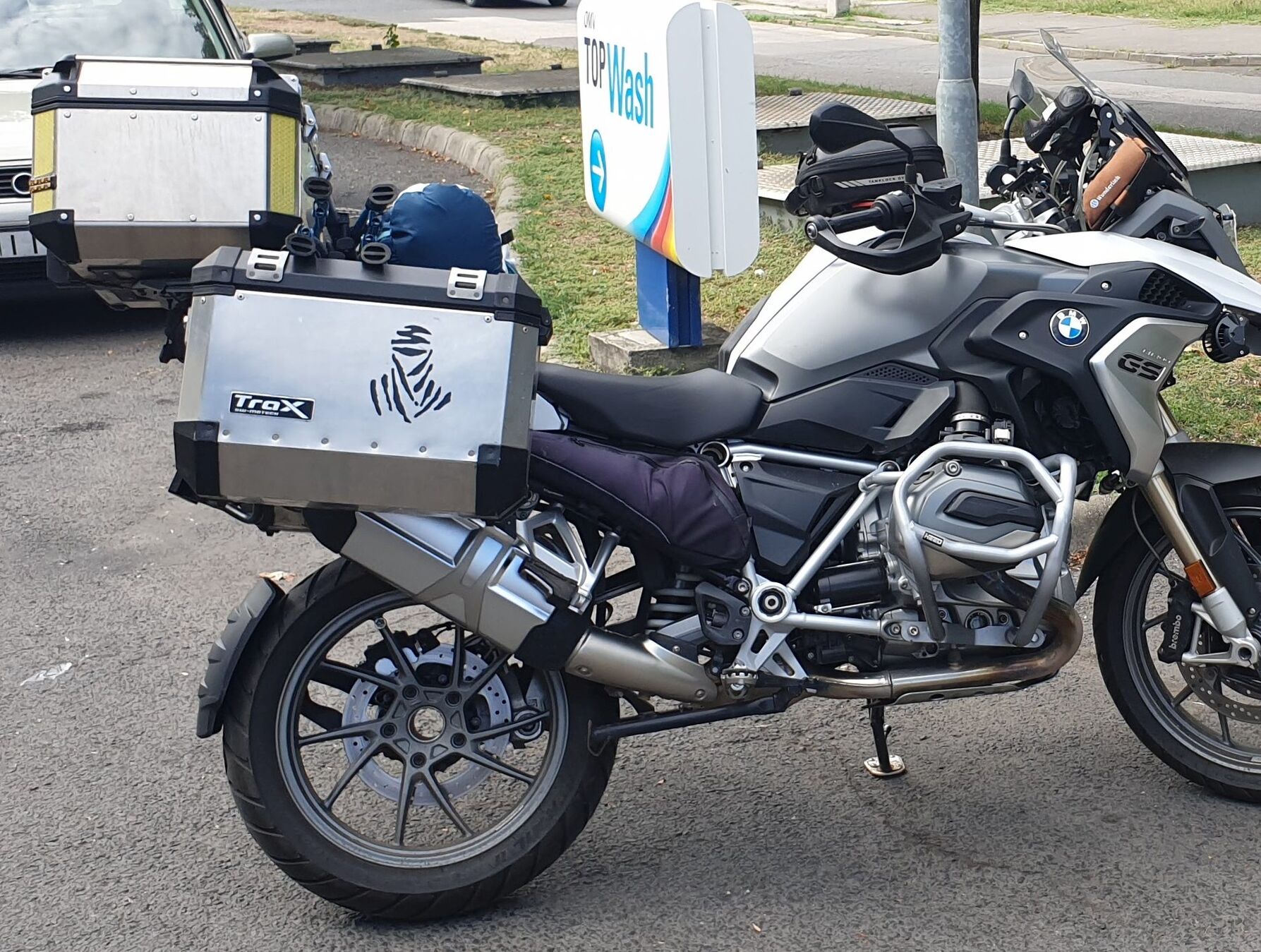 Nem megy, már próbáltam. Nagyon bírom az sw-motech konzolt, mert a puha táskának is van adaptere, meg a doboznak is, de a doboz 5 cm-el feljebb van, mint pl a gyári GS dobozai, én meg nem tudom átemelni a lábam. illetve nem mindig