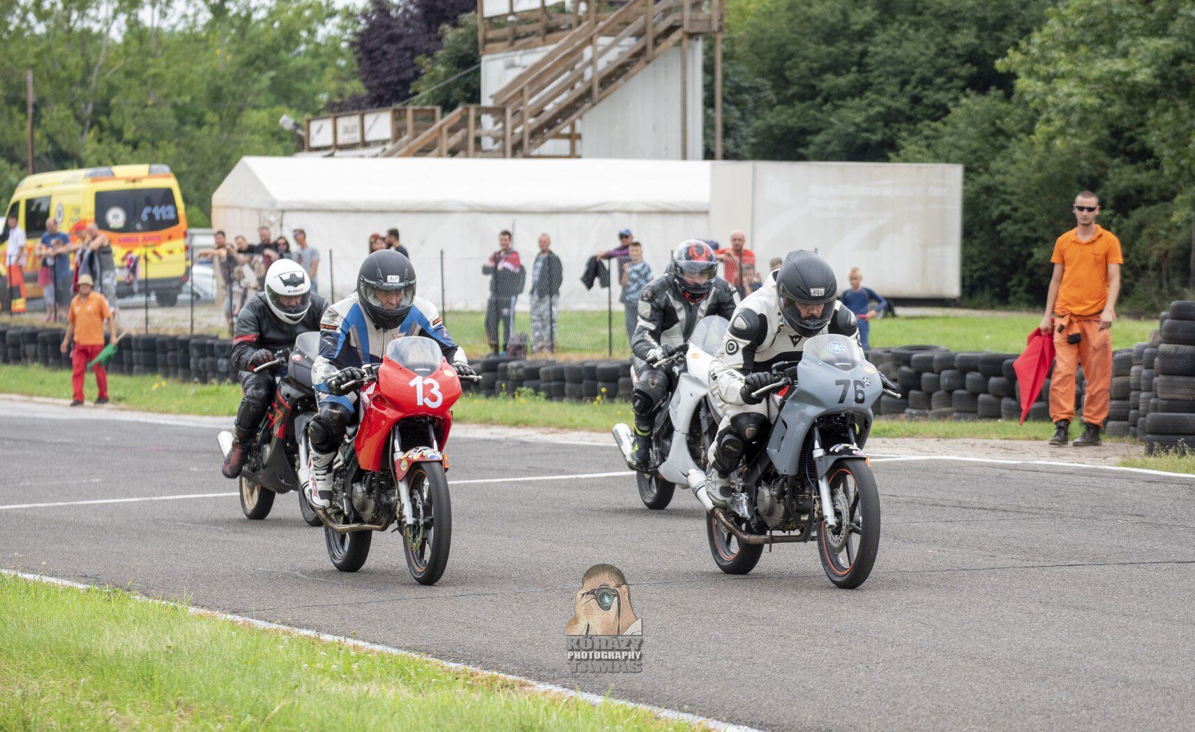 [link]Feltételezem akkor nincs olyan nagy szigor Kakucson, megnéznek pályára menet a motoron, motoroson valamit? Gondolok itt arra hogy megvan-e kötve a bőrruha, van-e hangnyomás mérés, stb...