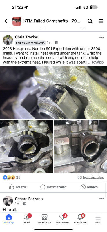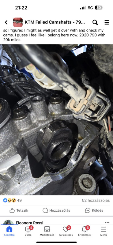 Nagyon soknál már 5-10 ezer között jelentkezett a probléma. Azt olvastam, hogy olajnyomás problémák vannak. Van egy külön csoport facen KTM failed camshafts 790-890-901 néven, nem csak 1-2 esetről van szó.