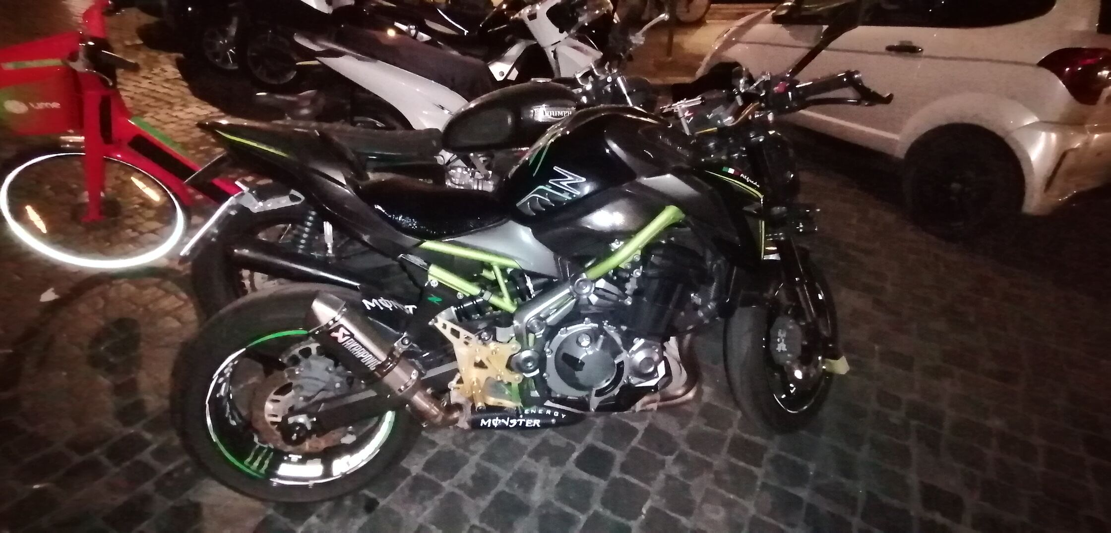 Kép később.@Topiccsendőr: Köszi a válaszokat! A korábbi műszaki viszga előtti átnézésen merült ez fel, nem tudom hogyan, a szerelő magyarázott az előző tulajnak valamit. Ő meg nem hasznátla úgy, hogy ABS bekapcsoljon. Én a próbakörön próbáltam a hátulját megfékezni, az megcsúszott. Mivel 2006-os a motor és korai az ABS, állítólag 40 km/h alatt nem is csinál semmit. Én ennél alacsonyabb sebesség alá érve mertem csak ennyire megfékezni. Mindenesetre az eladó nagyon korrekt volt, az ár úgy lett meghatározva, hogy az ABS kocka hibás. (a műszerfalon az ABS hiba visszajelző nem jelez hibát).
