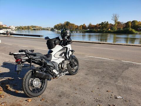 Amúgy meg jah. DCT váltós motorból "fabrikált" robi. A lényeg, hogy elférek rajta (nyújtott lábbal nem mert 195 vagyok, meg amúgy sem tudok úgy vezetni) bőven van ereje, város - agglomerációra tökéletes a 4 lit. fogyasztással, 17-es kerekekkel. Szélvédelem bazári. Nekem erre kellett. Jah és qwajól mutat az VFR1200XD mellett