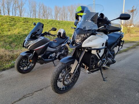 (pl. elektromos lengéscsillapitó - magasság állítás, ülésfűtés, LED világítás elöl, El. állítható plexi, tempomat... TELELEVER, stb. sorolhatnám). A V4 konfig miatt kényelmesebb az ülés pozíció mint a boxernél (nekem) de a GS ergonómiája, ülés beállítása az jóval jobb. Crosstoureren alacsonyabb a súlypont (Pont a GS-es haverom, mikor a Hondára ült mondta, hogy mennyivel érezhető, hogy a Honda könnyebb... ccc 285 kg, azaz 30-al nehezebb mint a GS, csak más konfig és ezért karcsúbb és légiesebb). Kardánreakció talán finomabb a Hondán, de ezt nem állíthatom, mert enyém DTC-s, simát ebből nem vezettem. A bandánkba van egy 1200 Tiger, a srácnak bejön. Az első teló az engem zavar, progresszív és szerintem kicsi a szöge túraenduróhoz. Meg az ülés... na az förtelmes rajta. Kúpos és a farokcsontra nehezedsz, sehogy sem tudtuk beállítani, hogy jó legyen... maradt a tomot. KTM, Multistrada bizserget, de most még nem látom azt a kombót előttem új motorban, amiért érdemes lenne lecserélni a Hondát... majd alakul.#123413Ferdzsoo