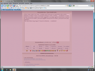 Szükségem lenne egy kis segítségre az alábbi problémával kapcsolatban. Tegnap meg szerettem volna nézni néhány képet a kép.tár.hu-n. De amikor beléptem a megfelelő könyvtárba, látszólag a könyvtár üres volt, próbaképp megnéztem más könyvtárakat, de mindig az volt a helyzet, hogy a könyvtárak alkönyvtárak megjelentek, de a képek nem. Ezzel nem is foglalkoztam sokat, de amikor olvasgatni szerettem volna a Totalcar népítélet oldalt, ott is hasonló dolog fogadott. Rámegyek akármelyik népítéletes összefoglalóra, és csak az üres lap fogad, csak az ítélet címe jelenik meg. Az egészbe a legdurvább, hogy újratettem az XP-t (már amúgy is nagyon régóta használtam), de a hiba megmaradt. Próbáltam Operát és IE-t is, de azokkal is ugyanez a helyzet.