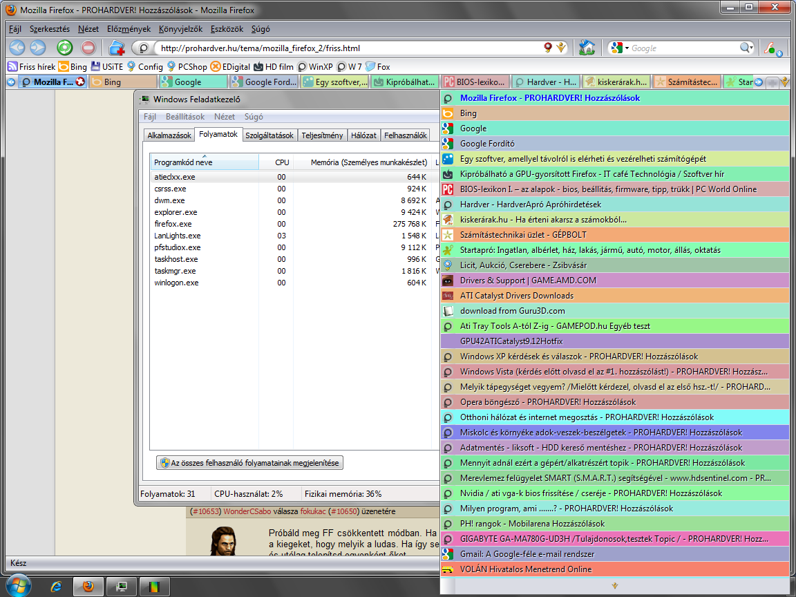 Ezt csak azert csinaltam hogy ha jol be van allitva az FF nem eszik annyi memot mint ahogyan sokan panaszkodnak ra, es nalam nincs lassulas sem.
