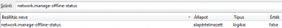 7. Miért van az, hogyha kipipálom, hogy "Kapcsolat nélküli munka", majd bezárom a Firefoxot és később elindítom, akkor eltűnik a pipa az előbb említett beállítás elől? Magától visszavált indításkor online módra a böngésző. Miért?