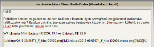 Próbáltam keresni megoldást rá, de nem találtam a fórumon. Ilyen szöveg/betű megjelenítési problémával találkoztatok már? Random csinálja, épp ezen szöveg begépelése közben is. Site-hoz nem köthető, és csakis FF-en belül jelentkezik, win-en belül nem.