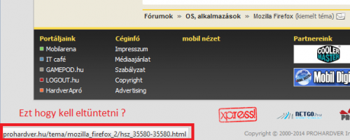 C:\Users \ Felhasznalo \ AppData \ Roaming \ Mozilla\Firefox \ Profiles \ XXX default \ storage \ persistent \ chrome de ide hiaba masolom be a magam altal keszitett userChrome.css fajlt benne a #statusbar-display { display: none !important;} sorral, a bongeszo ra sem hederit. Mint ahogy a kovetkezo szkript sem mukodik mar, ha jol emlekszem a 25--os verzio ota, Hide Connection Status Display Popup ami lenyegeben ugyanezt a sort tartalmazza.