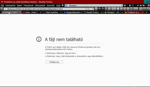 *Ha az eszközök/kegészítők/ghostery/beállítások felől nézed továbbra sem jön be,viszont a jobb felső ikonon mész rá a beállításokra akkor működik.