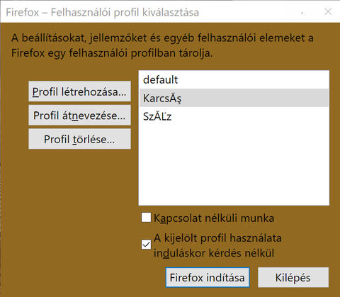 profiles.ininéha megváltozik, elvarázsolt karakterek kerülnek bele és nem tudom betölteni egyik profilt sem. Most is ez történt és csak le kellett cserélnem a tegnapi mentésemre és most OK. Egy Firefoxból való kilépés és a Windows újraindítása után tapasztaltam.Ilyen: