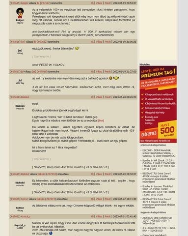 2021 óta minden ki lett már cserélve Routerek, gép, rendszer, böngésző....volt belőle kb 50 verzió, új telepítések stb. Csak Firefox alatt érzékelem ezt és csak itt a lapcsaládon. Sütik engedélyezve, Adatvédelmi beállítások alapon, Szokásos. Nem használok olyan kiegészítőt sem, ami hatással lenne erre az oldalra. Ha ilyen gond lenne, akkor másodszorra sem töltené be. (net gyors 150 Mbit/s...)