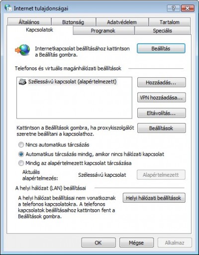 az uj 3.5-el nem müködik az Internet/Automatikus tárcsázás ha nincs kapcsolat funkcio, miért nem