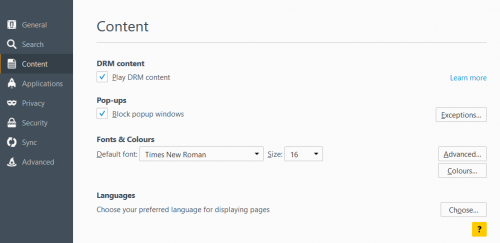 Már néztem én is a Beállítások/Tartalom opcióit: