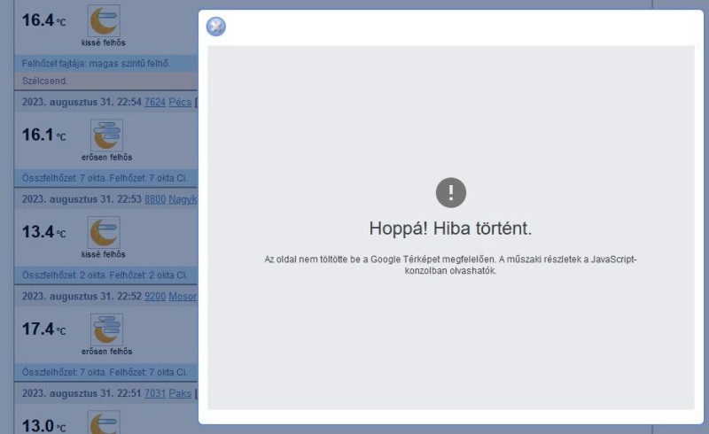 Ha rámegyek ezen az oldalon [link] az észlelés helyére akkor a Firefox (de az Edge is) csak egy pillanatra felvillantja a térképet, de nem tölti be: