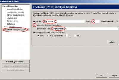 Próbáld meg a biztonsági beállítást megnézni, nem-e valamilyen SSl vagy TSL van neked beállítva. A helyes biztonsági beállítás: Nincs. -