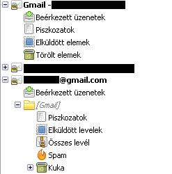 Mellesleg a felsőnél nem írja a @gmail.com-ot, csak ami előtte van. Az alsót regisztráltam később, tán újabb thunderbird verziónál.