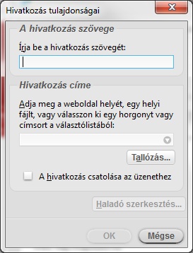 Ráadásul ez még a Beszúrás --> Hivatkozás (Ctrl+L) ---> Hivatkozás tulajdonságai útvonalon sem sikerül ..... -