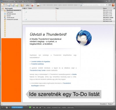 Hogyan tudnék a bal mappa oldalsáv alá egy To-Do listát készíteni TB-ben? Jelenleg külön alkalmazásom van erre a célra, de bírnám, ha itt működne valami egyszerű, esetleg emlékeztetővel ellátott kiegészítő. Addons oldalon csak kontakt oldalsávot találtam, megjelenésében valami hasonlóra volna szükségem. -
