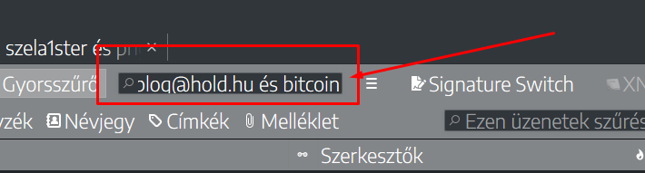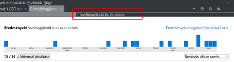 (A keresés egy elektronikus levélcímre és egy kulcsszóra történt ebben a példában. Természetesen további kulcsszavakat is be lehet írni. Azt nem próbáltam, hogy regex kifejezésekkel működik-e? Ha valaki tudja a választ, kérem írja meg)