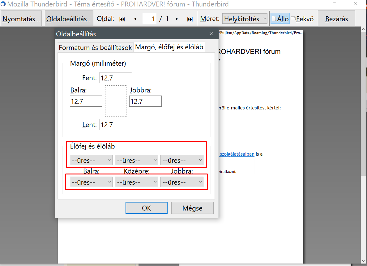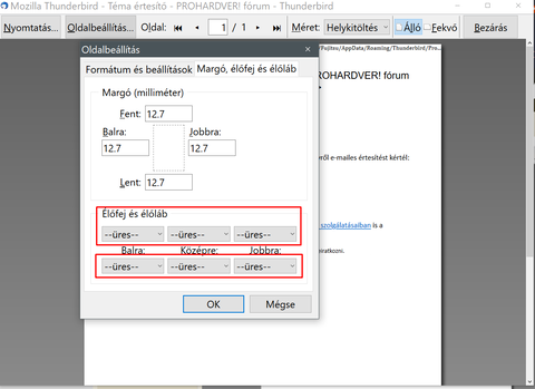 E-mail kinyomtatásakor rengeteg mindent kinyom fejlécként (?). Van vagy 1/2 oldal. Erre semmi szükségem nincs. Nem lehet valahogy beállítani, hogy csak a feladó, dátum + a levél tartalma jelennyen meg nyomtatásban? -